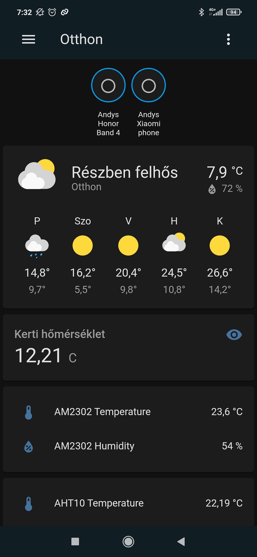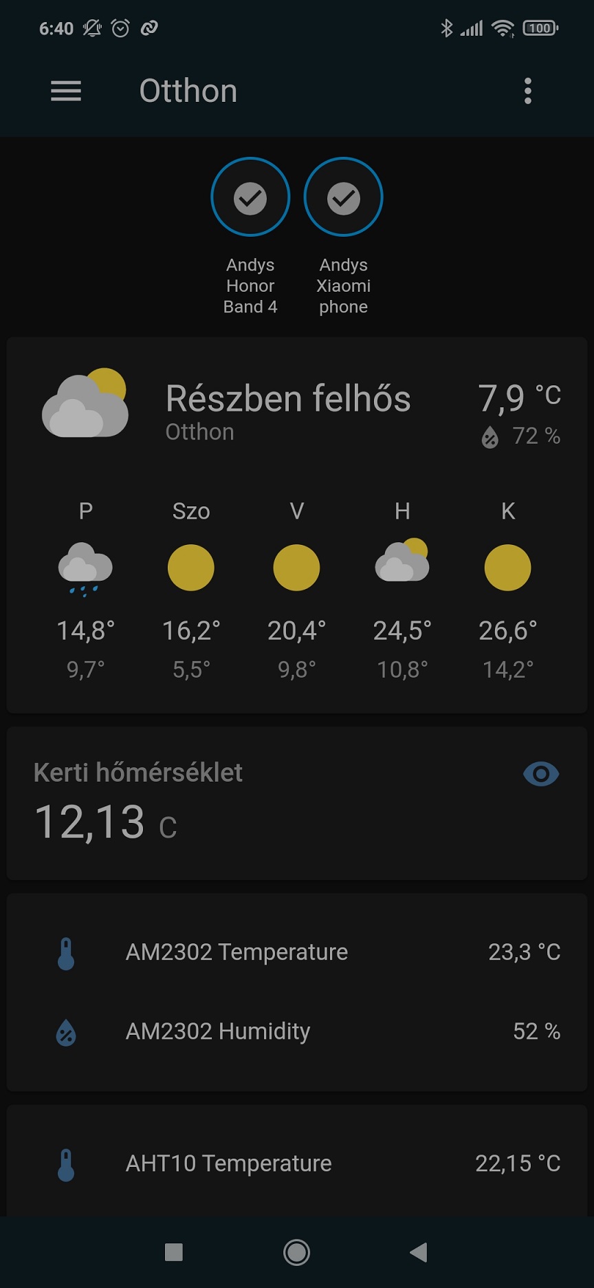 A telefon esetében az Android alkalmazás folyamatosan fut a háttérben és ez szerintem eléggé meríti az akksit. Továbbá nem teszteltem sokáig, de elég lassan frissítette az eszközöket, amikor reggel a kutya sétáltatásból hazaértem, azért eltelt egy kis idő mire észre vette az ESP32, hogy otthon vagyok.
