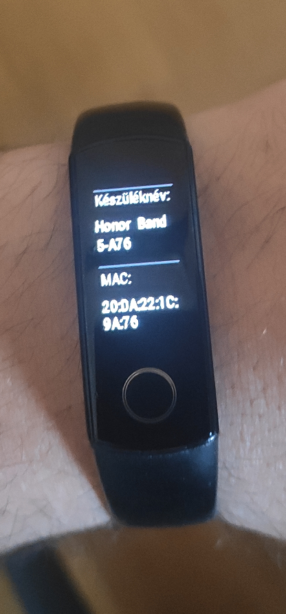 Az aktivitásmérő MAC címét pedig nem volt nehéz megtalálni, mert csak a menüben kellett kikeresni: